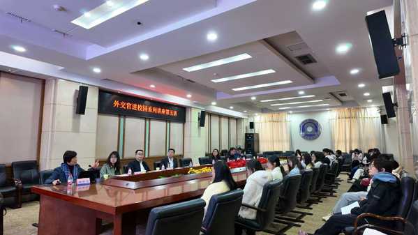 10 月27日,我校成功举办“外交官进校园”系列讲座第五讲。商务部机电和科技产业司原副司长,中国驻希腊使馆前商务参赞周若军应邀主讲,围绕“中国与希腊的经贸合作”与师生深度交流。天津市商务局外经处副处长董谭,天津市助企“走出去”服务联盟秘书长王宇,天开集团、天津东进航空科技相关负责人出席。周若军从希腊国情、中希经贸合作史、希腊参与“一带一路”建设等方面展开讲解,结合天外国际化定位,分享了语言优势转化路径,鼓励师生在国际舞台拓视野、展才干,深化对中希合作机制与希腊发展的理解。董谭从天津对外经贸需求出发,鼓励师生发挥外语优势,拓宽国际视野,向世界传递中国发展声音,为中国企业“走出去”积极献智,努力成