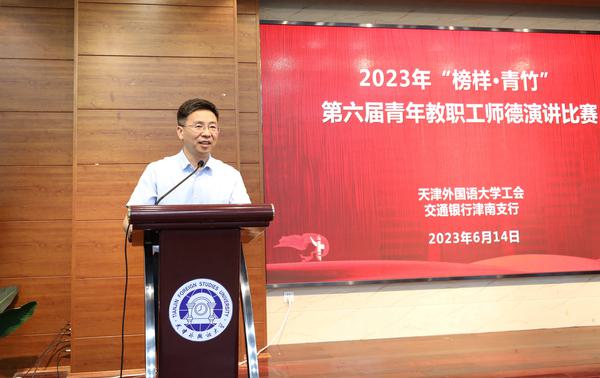 中外求索征程启,德业竞进意气扬。6月15日下午,我校2023届学生毕业典礼在马场道校区体育馆隆重举行,全体校领导、校学位评定委员会委员代表、相关部门、各学院负责同志、导师代表、校友代表及2023届毕业生参加了典礼。 毕业典礼现场 歌曲快闪 奏唱国歌校歌 毕业生记录精彩瞬间 一首《追光者》“快闪”拉开了典礼的帷幕,《再见》《凤凰花开的路口》点燃了现场浓郁的毕业氛围。31种外文书写的毕业祝福环绕四周,乘风破浪的景观小船象征着毕业生扬帆远航。各学院精心制作的视频《盛夏》、毕业视频《圆》让毕业生们热泪盈眶,满怀感动奔赴未来。 校党委书记周红蕾为毕业生代表颁发奖牌 校党委书记周红蕾为毕业生授旗 主席台领导为2023届校友联络人颁发聘任证书 校党委书记周红蕾为毕业生先进典型和基层就业优秀代表颁发纪念奖牌,并为毕业生授旗,希望全体毕业生胸怀“国之大者”,肩负民族复兴重任,展现天外力量和担当。主席台领导为2023届校友联络人颁发聘任证书,希望他们成为母校精神的传播者和校友感情的联络者,为母校和校友的共同发展贡献力量。 校长陈法春讲话 校党委副书记、校长陈法春以“沐光致远 晖光日新