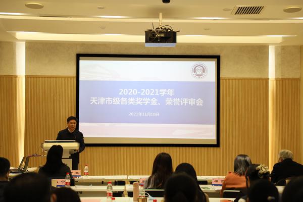 校党委副书记胡志刚讲话 天津市优秀学生、优秀学生干部、先进学生集体、创新创业奖学金获奖学生现场述职 为培养德智体美劳全面发展的新时代优秀大学生,传递榜样正能量,营造崇德向善、乐学尚能的良好校风学风,根据市教育两委相关部署和学校整体安排,11月10日,我校2020-2021学年市级各类奖学金、荣誉评审会在马场道校区大江厅召开。校党委副书记胡志刚,校关工委、教务处、学生处、校团委等相关部门负责人出席。 会前,各学院主管学生工作的副书记将天津市优秀学生、优秀学生干部,天津市先进学生集体、天津市创新创业奖学金、天津市贫困大学生助学金等4项奖助学金学院的评选、审核、公示等整体工作情况和等额推荐名额的学生情况报送了文字版汇报材料。 评审会上,参评个人、集体通过PPT展示和事迹演讲,从思想引领、专业学习、社会实践、志愿服务等多角度分享了自己一年来取得的优异成绩,充分展现了新时代大学生笃行致远、砥砺奋进的精神风貌。整场评审会气氛热烈,掌声不断,高潮迭起。经过校评审领导小组评议,拟推荐求索荣誉学院彭丽等12名同学为天津市优秀学生,拟推荐国际商学院刘鸿飞等5名同学为天津市优秀学生干部,拟推荐高级翻译学院