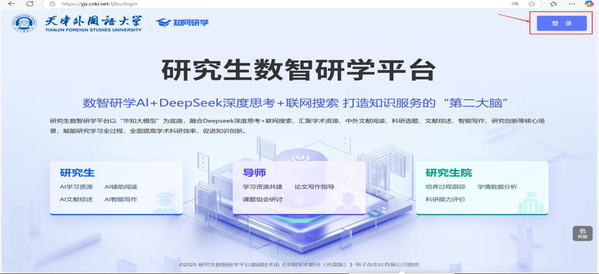 为深入推进AI赋能学科内涵建设,促进研究生教育高质量发展,学校联合中国知网研学平台×DeepSeek,开通研究生数智研学平台体验版,为提升教师数智素养、助力研究生科学研究、丰富学术资源模态与提高师生研学效率注入新的动能。研学平台聚焦资源汇聚、文献研读、智能写作、多端同步四大核心场景,面向师生打造一站式、智能化的学习平台,全面提高研学效率,加快知识创新。体验方式如下:1.打开网址:https://yjs.cnki.net/tjfsu点击右上角【登录】,注册或登录个人账号,选择学生/教师身份,填写姓名、学号/工号后进入系统,点击左侧导航栏--【研究生数智研学平台】开始体验。2.打开网址:https://grad.tjfsu.edu.cn/登录开云链接官网研究生院,点击研究生数智研学平台开始体验。3.打开手机应用商店,搜索app【知网研学】,下载体验。今后,学校将继续探索AI在学科建设与研究生培养等方面的深度应用,欢迎广大师生积极试用体验!(通讯员/金欣 内容审核/冯鹏 蒋天皓 杨丽娜)(网页编辑/庞轶丹)