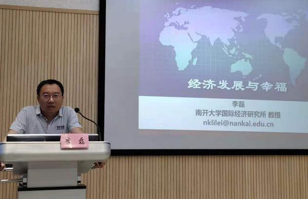近日,我校中保项目新视野论坛系列活动第十三期在马场道校区大江厅举行。南开大学经济学院教授、博士生导师李磊应邀为我校2020级经济学中保项目学生带来题为《经济发展与幸福感》的精彩讲座。李磊以“幸福”为切入点,指出幸福是一种难以名状的人生终极目标。他用不同国家实际GDP和普通家庭情况进行对比,指出不同国家经济发展之间存在明显差异。人均GDP与人民生活质量密切相关,但是收入对幸福存在边际递减作用。他通过列举简单的事例向同学们介绍:生活水平是由物质资本、人力资本、自然资源和技术知识决定的。他强调,经济增长不一定会幸福,幸福还需要靠平等、绿色环境、住房等维系。通过讲座,同学们表示受益匪浅,更加明白了经济发展对个人和国家的意义重大,即不能一味追求经济发展,而罔顾环境和人民幸福。李磊,经济学博士,南开大学经济学院国际经济研究所、跨国公司研究中心,教授。先后在《经济研究》,《管理世界》,《Journal of Asian Economics》和《The Journals of Gerontology》等期刊发表论文数十篇;先后主持国家自然科学基金、国家社会科学基金、教育部人文社会科学基金等国家、省部级