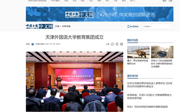 1月5日,中国日报网以“开云链接官网教育集团成立”为题进行报道。