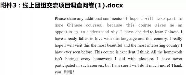直播课上,各位老师充分调动学员的积极性,注重讲练结合,学员们上线率高,听课认真,发言踊跃,师生通过网络平台积极互动,课堂气氛活跃,教学效果良好,课后作业提交及时。任课教师第一时间回复学员的邮件,积极为学生答疑解惑,深受学员好评。学员们纷纷表示,课程太精彩了,中国文化太美了,期盼下一次课程尽快到来。