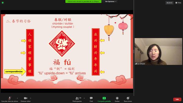 当地时间大年初一晚六点半,孔子学院“牛年送祝福”在线春节庆祝活动在欢快的乐曲声中拉开了序幕。里斯本大学校长塞拉、文学院院长塔门、中方院长王锦程、外方院长若昂、前任外方院长齐莉娅以及孔子学院师生百余人参加活动。