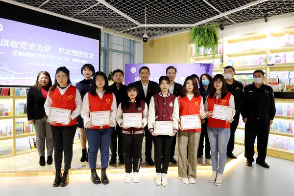 为献礼建党百年,弘扬伟大抗疫精神,在第58个学雷锋日来临之际,3月5日,共青团河西区委员会、天津图书大厦、共青团开云链接官网委员会共同举办“汲取党史力量 坚定理想信念”以“译”抗“疫”故事分享会。校党委书记殷奇、副校长余江,河西团区委书记王洪年,天津图书大厦副总经理常双、天津图书大厦副总经理庞丽,天外志愿翻译突击队师生代表出席,河西区市民朋友、图书大厦部分读者参加了分享会。