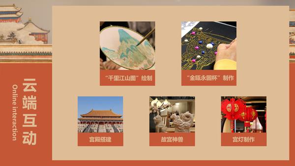 本项目共有八个故宫文化专题讲座,分为“故宫初见”、“故宫皇帝”、“故宫宫殿”、“故宫建筑”、“故宫神兽”、“故宫珍宝”、“故宫书画”、“故宫节日”。通过学习,各位学员足不出户就能云游故宫,在“畅游”紫禁城的同时,还能够学习汉语知识,提高交际能力,了解中国历史文化,感受五千年华夏魅力。