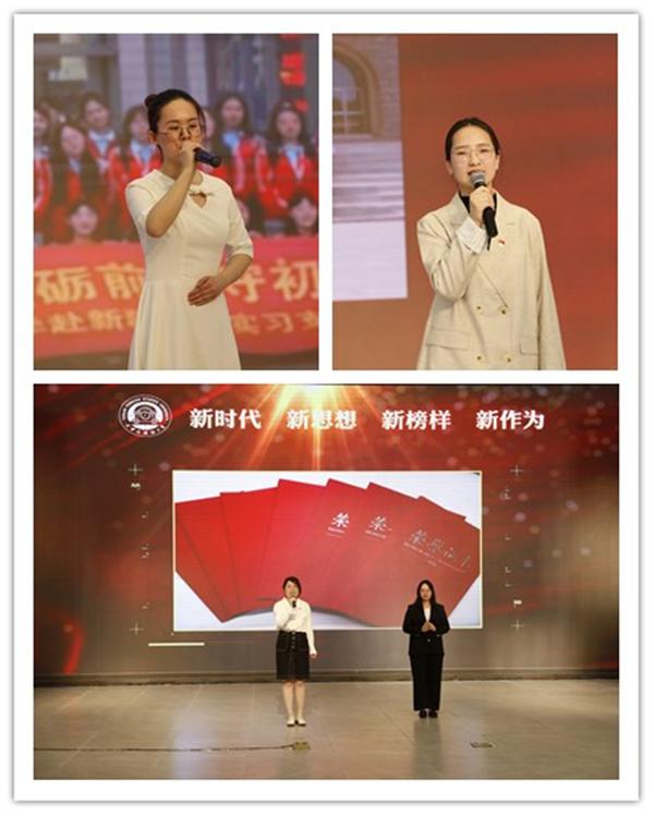 优秀学子事迹分享环节共分为三个篇章:在“初心------家国使命 勇毅担当”篇章中,天津市大学生年度人物获得者高岩,优秀退伍学子、新中国成立70周年庆祝大会亲历者吴浩楠,志愿翻译突击队成员、渤海道德奖学金获得者崔文颖,孔子学院志愿者、“汉语桥”项目学生助教张雨晴,讲述了弘强国志砥砺爱国行、怀沙场梦携笔赴疆场、以口为刀战“疫”逆行的家国情怀;在“奋斗------为党为国 无悔青春”篇章中,天津市大学生自强自立年度人物提名奖获得者姜涓,三井住友银行(中国)有限公司奖学金获得者陈晴,天津市创业奖学金获得者张馨戈,国家奖学金获得者、“知在天外 行在桃园”实践项目优秀个人陈心怡,展现了面对艰难信念坚不可摧、投身社会实践热心公益、专注创新创业无悔奋斗的青春热血;在“起航------砥砺前行 逐梦未来”篇章中,天津市应急外语服务“一基地三库”成员高铭铭,国家励志奖学金获得者、外交部定向培养人选王瑞,天津市“三八红旗手”标兵、 2009届校友高超,汇报了参与应急外语服务、立志投身外交事业、实干钻研逐梦起航的动人故事。每位宣讲的同学还特别推荐了一本党史书籍,并分享党的优良传统对自己成长成才的影响,引起在场观众的共鸣。