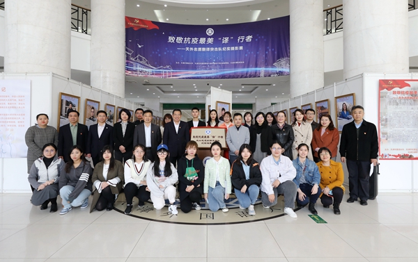 为开展好党史学习教育,从党的伟大奋斗历程中汲取智慧和力量,弘扬抗疫精神,传承优良作风,3月29日下午,我校在马场道校区举办党史学习教育系列活动“致敬抗疫最美‘译’行者------天外志愿翻译突击队纪实摄影展”启动仪式。天津市摄影家协会秘书长包静,市外办协调处四级调研员、市外办疫情防控口岸组志愿者服务负责人边元元,团市委社会联络部副部长张晓萌,我校党委书记殷奇,校党委副书记、校长陈法春,校党委副书记胡志刚,派驻纪检监察组组长于富来出席活动,党委宣传部、校团委负责同志,天外志愿翻译突击队师生代表参加活动。活动由校党委常委、宣传部部长郭太主持。