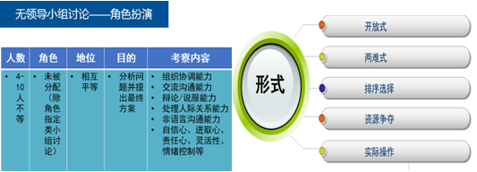 其次,教师重点讲授无领导小组讨论面试方法的应用,引导学生未来若从事人力资源招聘工作如何甄选出组织人才,以及如果作为应聘者如何在无领导小组讨论中脱颖而出。
