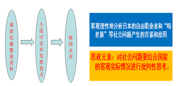 对学生陈述观点和思考方式进行点评,引导学生逐渐养成思辨性看待问题的意识。对学生经过深入思考后发表的独到见解予以肯定,对错误的观点加以引导。引导学生正确理解日本的自由职业者和“啃老族”等社会问题,客观理性地分析其产生的背景和原因,正确认识社会现象。与此同时,引导学生思考中国是否存在类似的问题,在面临同样问题时,年轻人应当如何判断辨识,引导学生客观辩证地看待问题,树立正确的人生观、价值观。