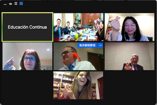 11月12日上午,哥伦比亚塔德奥大学孔子学院2021年度理事会以视频会议形式召开。孔子学院理事长、塔德奥大学校长卡洛斯·桑切斯,孔子学院理事、塔德奥大学副校长安迪斯·荷热拉,孔子学院副理事长、我校校长陈法春,孔子学院理事、副校长李迎迎出席会议。塔德奥大学孔子学院中哥方院长,塔德奥大学及我校孔子学院工作处相关工作人员参加会议。