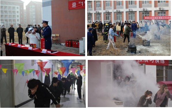 本次演练分为三个阶段:第一阶段,天津特勤消防救援消防支队王存印指导为参演人员现场讲解冬季防火安全知识,灭火器、消火栓的使用方法,以及遇到火灾后如何自救与逃生;第二阶段,以十四号宿舍楼为现场模拟火情,启动消防应急预案,进行疏散演练;第三阶段,全体参演人员练习用灭火器扑灭初期火情。整个演习过程,参演师生行动迅速、动作规范、疏散有序。