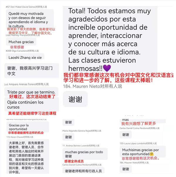 此次为期11天的“尝新?畅心?敞心”中国美食之旅线上团组交流项目在各方的支持下圆满结束,项目累计接受来自哥伦比亚全国的115所大学的280余名大学生注册报名。本次项目课程丰富,课时安排合理;教师团队专业,教学质量高;学员出勤率高,参与热情。我校将以此为新起点,探索“中文+职业技能”教育新模式,为加强中外语言和文化交流积极搭平台、拓渠道,架设好中外文明互学互鉴的桥梁。
