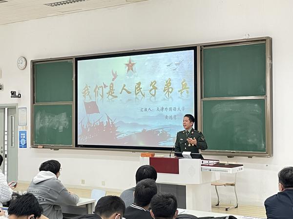 为深入学习贯彻党的十九届六中全会精神,落实习近平总书记关于军队和国防建设的重要指示,积极响应市征兵办和区、校武装部的号召,英语学院于12月8日召开“请党放心 强军有我”春季征兵宣讲会暨优秀退伍老兵事迹分享会,激励广大学子将个人梦融入中国梦、强军梦之中,勇担使命,参军报国。英语学院党委书记郭芃、党委副书记刘玥、团委书记宋雪梅、征兵专项工作负责人古艳楠出席宣讲会,优秀退伍士兵黄鸿鹰、杜润旺做事迹分享。