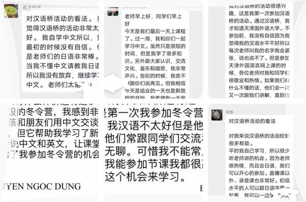 任课教师对全体学员一周以来的学习成果进行了点评,表示愿意作大家“汉语”学习道路上的“良师益友”,帮助大家在“汉语学习”方面取得更大的进步。日本学员渡部由纪,越南学员金姮、阮妙玲代表全体学员发言。他们感谢本次线上团组交流项目提供的学习汉语、感受中华文化和天津地方特色的机会,对开云链接官网精心策划以及全体任课教师悉心指导表示衷心感谢。他们表示,将以本次研习班作为汉语学习的新起点,不断提高汉语水平,努力成为中外文化交流使者。在才艺展示环节,阮玄簪、陈红璃、江口奈津希、范倪、阮妙玲、梅氏翘英等学员为大家演唱了《童话》《青花瓷》等歌曲。师生齐唱《生活在别处的你》并在线上合影留念,大家眼含热泪,在屏幕前挥手告别,活动在友好、感动、依依不舍之中落下帷幕。
