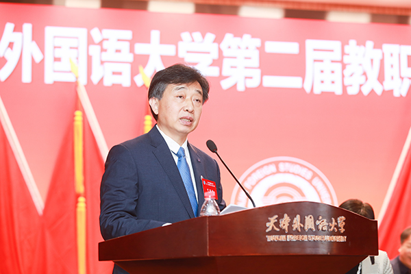 殷奇强调,未来五年是学校各项事业加快发展的关键时期,要更加紧密地团结在以习近平同志为核心的党中央周围,高举习近平新时代中国特色社会主义思想伟大旗帜,团结带领广大教职员工,统一思想、凝心聚力,不忘初心、牢记使命,勇于担当、善于作为,发扬万众一心加油干、越是艰险越向前的奋斗精神,向着建设特色鲜明高水平外国语大学目标迈进,为实现中华民族伟大复兴的中国梦作出新的更大贡献!
