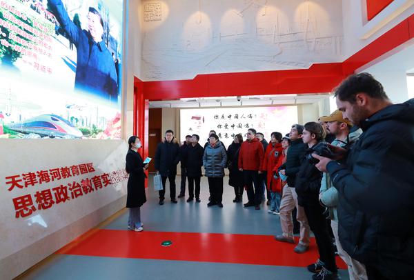 为推进党史学习教育,深入学习宣传党的十九届六中全会精神,贯彻落实习近平总书记在学校思想政治理论课教师座谈会上的重要讲话精神,12月17日下午,我校马克思主义学院组织50余名中外师生赴天津海河教育园区思想政治教育实践基地(红馆)参观学习,现场宣讲党的十九届六中全会精神,让学生在“行走”中看到、听到、触摸到中国共产党百年奋斗的重大成就和历史经验。