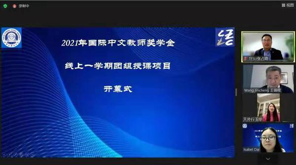 12月7日,由教育部中外语言交流合作中心主办,我校国际教育学院承办的国际中文教师奖学金线上一学期团组授课项目开幕式顺利举行。国际交流与合作处处长张占奇、国际教育学院副院长行玉华、葡萄牙里斯本大学孔子学院中方院长王锦程出席开幕式,本项目授课教师团队及学员参加。开幕式由国际教育学院教师代秀敏主持。