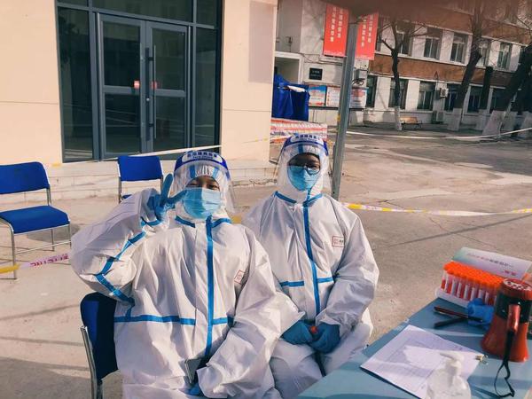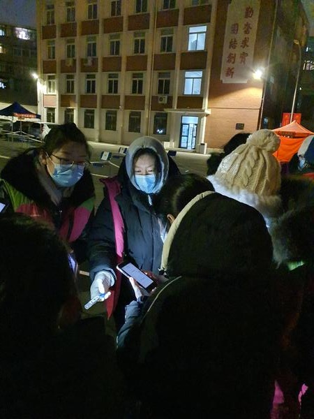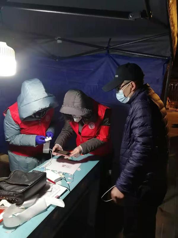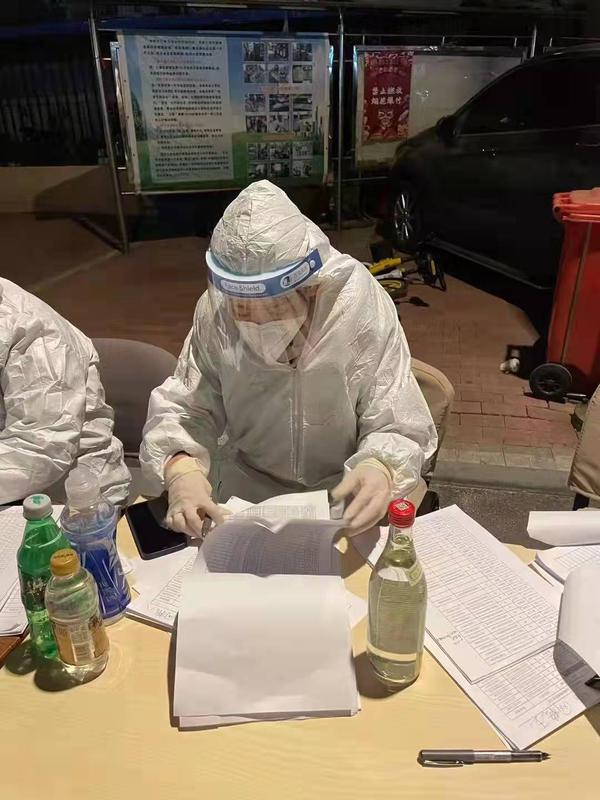 国内合作与校友联络工作处副处长郭晓明和爱人孙老师都是学校教职工,夫妻二人齐上阵,共同协助第二轮核酸筛查工作。张璐云老师协助社区撰写、张贴核酸检测通知,在寒风中奋战12个小时,完成1200余人的信息录入。苑菲老师,民盟盟员,接到通知后打车15公里前往河西区振才里社区开展志愿服务,组织居民排队等候,逐人测量体温,查验健康码,帮助老人下载软件、申领健康码,持续到第二天凌晨才从服务地点离开。