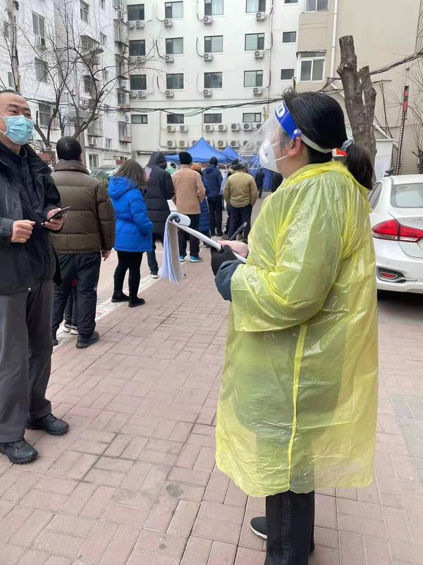 民革党员、国际商学院教师王冠辉面对凶猛肆虐的疫情,不畏艰辛、顶风逆行,积极下沉社区防疫工作,服务于河西区大营门街浦口道社区,配合做好疫情数据排查、辖区居民核酸检测、日常生活保障、科学防范宣传等工作,保障所负责的检测口采集工作进展顺畅、高效,与社区同志们连续奋战在一线,为战“疫”努力贡献外大民革力量,共同构筑人民健康防线。