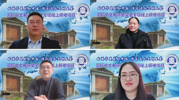 1月25日,恰逢中国小年,日语学院“云游华夏感知中国 博古通今文明互鉴”国际中文教师奖学金专项线上研修项目结业仪式成功举办。国际合作与交流处处长张占奇,日语学院党委书记尹德献、院长朱鹏霄、党委副书记刘申琦 、项目授课教师与全体学员相聚“云端”,为项目画上圆满的句号。