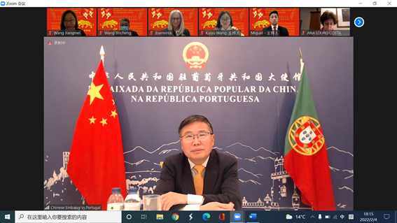 当地时间2月4日晚6点,里斯本大学孔子学院“迎虎年,送吉祥”春节庆祝活动隆重开幕。中国驻葡萄牙大使赵本堂出席,里斯本大学副校长西西莲?罗德里格斯、部分二级学院院长、孔子学院中外方院长和师生共一百余人参加了此次线上活动。