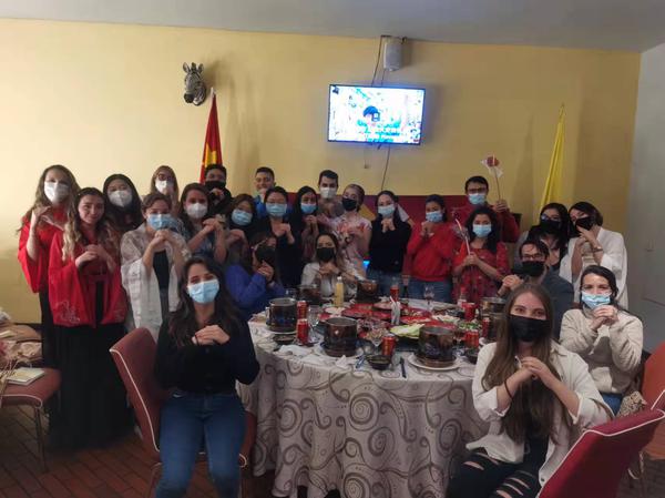 2月3日,塔德奥大学孔子学院面向全波哥大民众举办中国新春火锅联谊会,邀请40名当地民众代表一起欢庆新春。在新春火锅联谊会现场,当地民众纷纷试穿汉服、齐襟儒裙、旗袍等中国传统服饰,学习筷子文化和使用方法、火锅的文化和食用方法等,并和塔德奥大学孔子学院的老师们一起参加抽奖、红包、中国春节知识有奖问答等趣味游戏。在这40位民众中,有不少是全家出动,在一片欢快的歌声和欢乐的氛围中一起共贺新春、共享未来。
