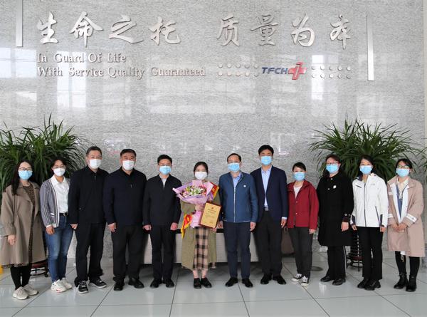 校党委副书记胡志刚,天津市红十字会党组成员、秘书长毛全华,红十字事务中心主任宫敬义,校学生处、国内合作与校友联络工作处、英语学院相关负责人来到医院看望并慰问赵彩彤。胡志刚详细询问了她的身体状况,高度赞扬了她生命至上、大爱无疆的精神。学生处、国内合作与校友联络工作处赠送了慰问信和纪念品,毛全华、宫敬义为其颁发了中华骨髓库荣誉证书以及天津市“红十字博爱”奖章。