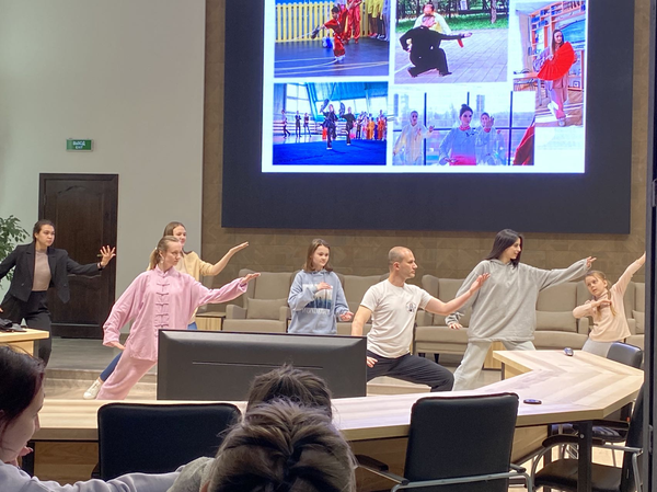 开幕式上,孔子学院本土教师安娜介绍了“2022年度体育节”的主要内容。市武术协会教练杜金、卢科扬涅茨受邀带队参加开幕式,为现场观众介绍了中国武术和学习武术的益处等,并表演了太极拳和太极扇。武术运动员们为大家介绍了如何用武术强身健体和进行自我防御,并邀请现场观众一起互动体验。