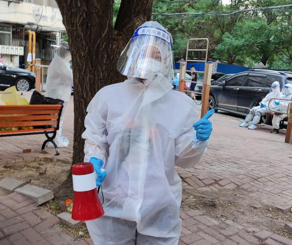 继续教育学院教师朱文艳深知小区存在潜在传染风险,仍第一时间向居委会报到,安排好两个幼小的孩子,在完成教学任务后第一时间投入到志愿服务中。不同于严冬的寒冷彻骨,酷暑之下身着防护服闷热异常,但为了保障大家按秩序、保持间距高效完成核酸检测工作,她与医务工作者、志愿者一起并肩作战,一次次提高工作效率,缩短了群众在外逗留时间,为抗疫贡献出了不起的“平凡力量”。