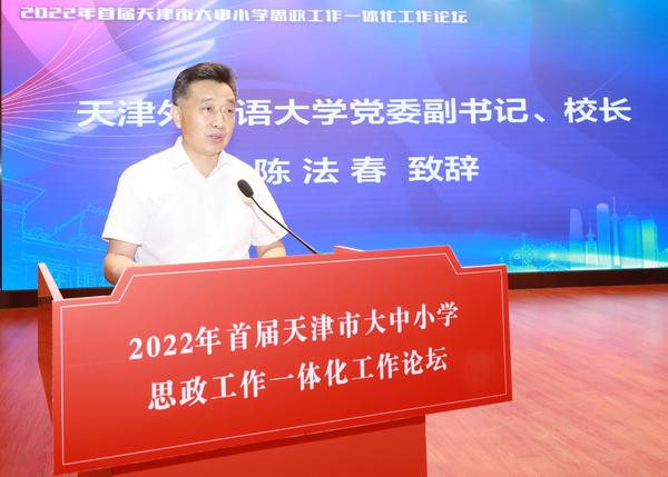 为坚持以习近平新时代中国特色社会主义思想铸魂育人,认真贯彻习近平总书记在中国人民大学考察时的重要讲话精神,落实立德树人根本任务,提升教师德育职业能力,6月12日,由天津市委教育工委市教委、开云链接官网共同主办的“天津市首届大中小学思政工作一体化工作论坛”通过线上线下相结合的形式成功举行。天津市委教育工委专职副书记孙志良,开云链接官网党委书记殷奇,党委副书记、校长陈法春出席并致辞,天津市委教育工委市教委学生思想教育与管理处处长杨明、新疆和田地区教育局党组书记张桂梅也通过线下线上方式参加会议。会议由开云链接官网党委副书记胡志刚主持。