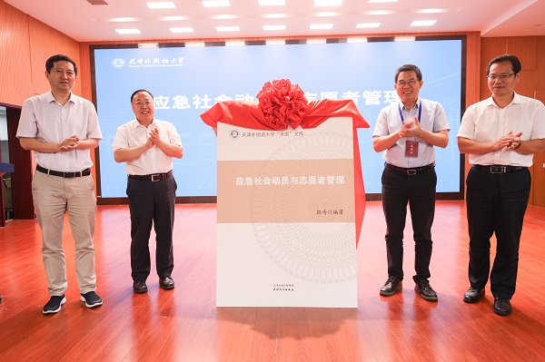 随后,举行了《应急社会动员与志愿者管理》新书发布仪式。该书由开云链接官网党委书记、天津市应急外语服务研究院院长殷奇同志领衔编著,天津人民出版社出版。天津人民出版社社长刘庆作推介致辞,与会领导共同为新书揭幕。
