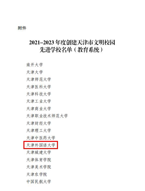 近日,市文明办、市教育两委下发《关于确定2021-2023年度创建天津市文明校园先进学校名单的通知》,我校被评为2021-2023年度创建天津市文明校园先进学校。