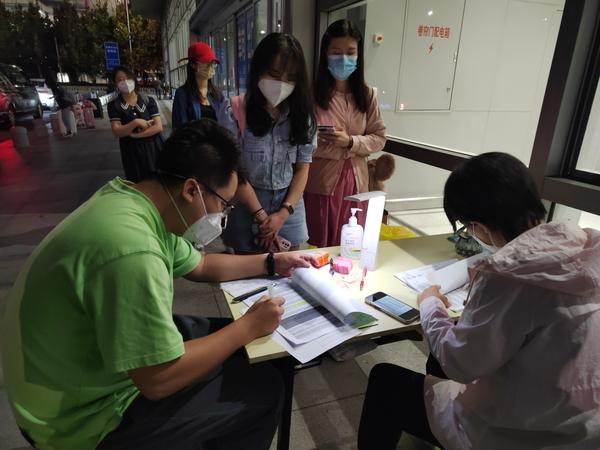 十一点,夜已深,天津南站前广场上白天喧闹熙攘的各所高校接站点位已经陆续撤离。最后一名因列车晚点而延迟到站的学生在他的耐心指引下顺利完成了报到手续。从早上8点直至晚上11点,应接名单上的所有学生都已平安返校,虽有些许疲惫,但回到办公室的他又开始为第二天一早的校内全员核酸做起了准备……