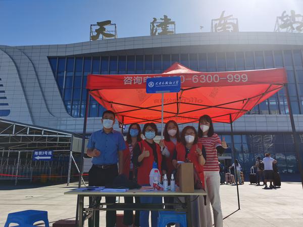 英语学院精心策划,充分准备,为每一位新生准备了防疫礼包,守护新生的健康安全;悉心安排,全力奉献,在每一栋宿舍楼下配备了专门的志愿者帮助新生们搬运行李,点对点服务到位;初入天外,创意留念,设计了创意“朋友圈”拍照打卡留影版,留下新生与天外英院的第一张合影。