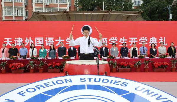 开学典礼在庄严的升旗仪式中拉开帷幕,五星红旗伴随雄壮的国歌声冉冉升起。天外蓝的校训立体字熠熠生辉,提振精神的“击鼓明志”响彻校园。