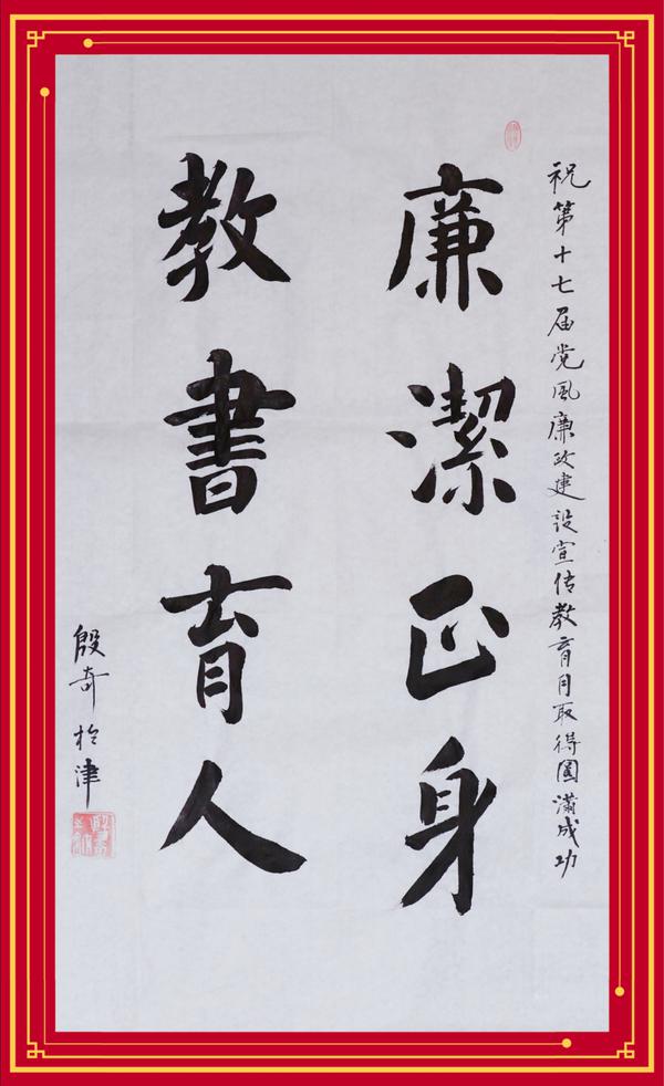 【党风廉政】校党委书记殷奇书法作品《廉洁正身 教书育人》