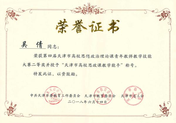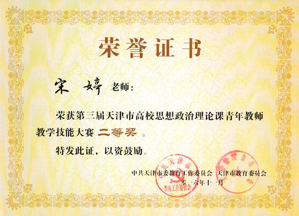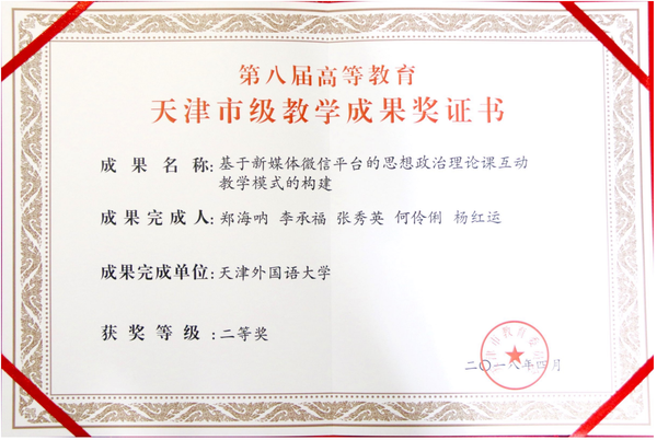思政课教师的教学能力不断提高。《毛泽东思想和中国特色社会主义理论体系概论》《中国近现代史纲要》课程组获得校级教学团队;2人获得天津市青年教师基本功大赛二等奖;1人获得“首届全国高校教师教学创新大赛”天津地区二等奖;3人获得天津市高校思想政治教育“精彩一课”视频公开课大赛一、二、三等奖;2人获得天津市思想政治理论课教学比武大赛二、三等奖;3人获得校级青年教职工基本功竞赛一等奖、2人获得三等奖;4人获得校级教学质量奖。