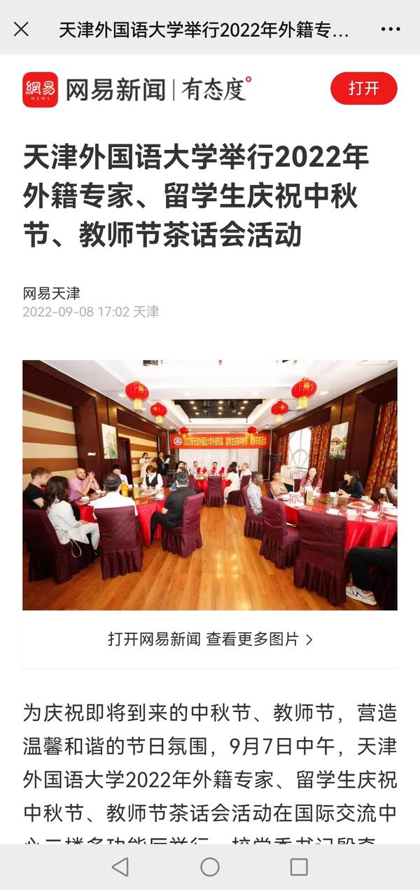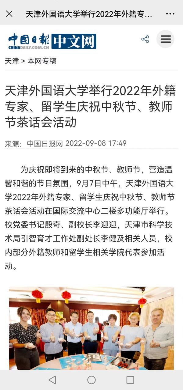 9月7日中午,我校2022年外籍专家、留学生庆祝中秋节、教师节茶话会活动在国际交流中心二楼多功能厅举行。与会人员在面点师的指导下,亲身体验了如何制作月饼,感受到了中国传统美食的魅力。中国日报网、天津教育报、网易新闻等媒体对此进行了报道。