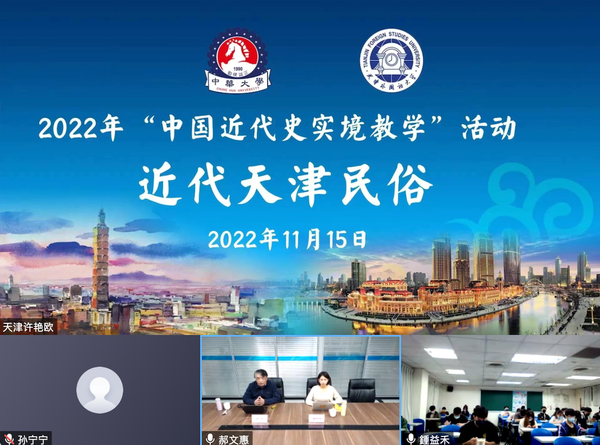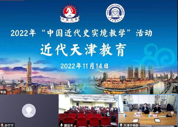 11月14日至15日,我校和台湾中华大学联合开展2022年“中国近代史实境教学”活动,通过“近代天津教育”“近代天津民俗”两场远程连线讲座,两校师生云端相聚,畅谈交流。讲座由台湾中华大学通识教育中心教师钟益禾主持。