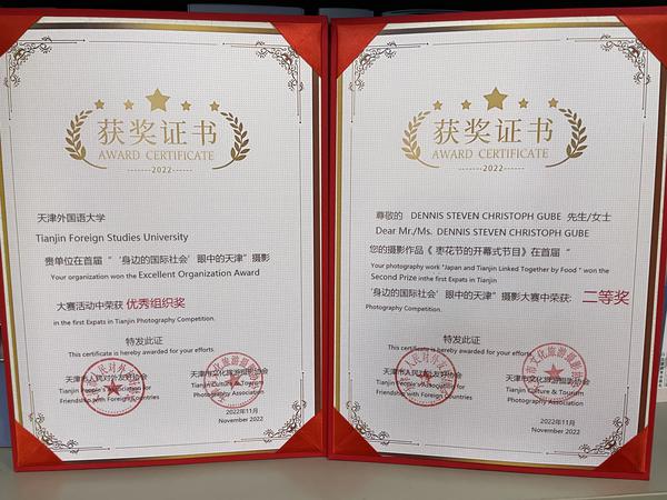 在市对外友协举办的“‘身边的国际社会’眼中的天津”首届摄影大赛中,开云链接官网获得优秀组织奖,德国籍教师克里斯·古博的摄影作品《枣花节的开幕式节目》获得二等奖,并作为获奖者代表之一在颁奖仪式上作视频致辞。古博表示,非常高兴能够获奖,感谢活动主办方和学校提供的学习机会。此次参观滨海崔庄古冬枣园第一届枣花节暨天津市乡村传统文体项目展演活动,令人收获颇丰、回味无穷,希望以后有机会参加更多这样的活动。