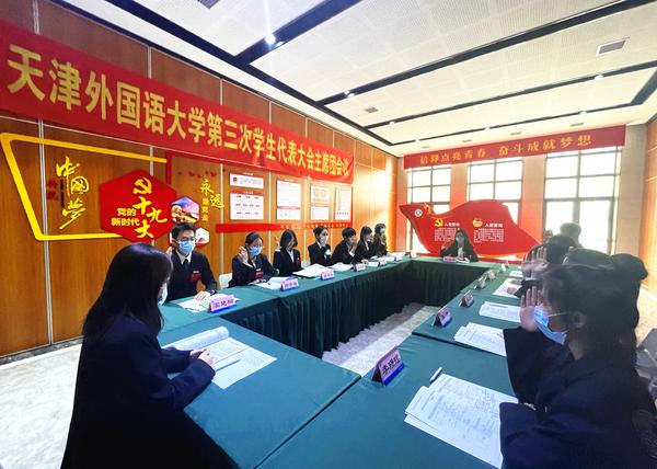 本次大会高举中国特色社会主义伟大旗帜,以习近平新时代中国特色社会主义思想为指导,深入学习贯彻落实党的二十大精神、团的十八大精神和全国学联二十七大精神,认真落实天津市第十二次党代会精神,紧密围绕学校中心工作,践行初心使命、服务师生发展,团结带领广大学生在建设特色鲜明的高水平外国语大学的征程中绽放奋斗之花。