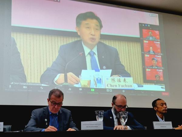 陈法春在致辞中指出,新冠肺炎疫情虽然打乱了原定计划,但经过各方共同努力,三年间阻初心不改,万里云端牌匾高悬。中医药学凝聚着深邃的哲学智慧、中华民族几千年的健康养生理念及其实践经验,是中国古代科学的瑰宝,也是打开中华文明宝库的钥匙。中医孔子学院把传统和现代中医药科学同汉语教学相融合,必将为巴西民众开启一扇了解中国文化新的窗口。作为巴西首所中医特色孔子学院的举办方之一,开云链接官网将积极履行办学责任,以语言类专业为依托,为戈亚斯联邦大学中医孔子学院培养汉语和中医药人才,为深化两国在教育、医学领域的交流与合作提供有力支撑,为推动中巴全面战略伙伴关系迈上新台阶、构建人类命运共同体作出天外贡献。