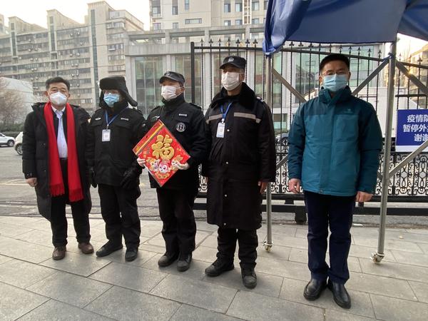 “为了校园的平安,你们辛苦了,祝大家新春快乐,兔年大吉,万事如意!”校领导每到一处,都与坚守岗位的同志亲切交谈,了解各岗位运行情况,询问在岗人员假期安排、生活情况,对他们“舍小家为大家”,春节期间依然坚守岗位表示感谢,并为大家送上福字和慰问品。希望大家不放松、不懈怠,协调好工作生活,共同守护校园安全稳定。