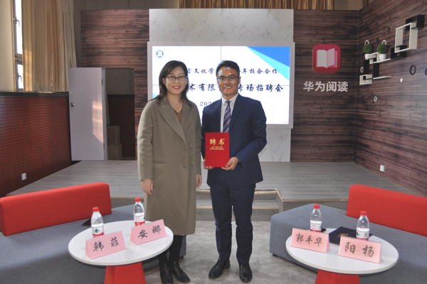 华为运营商BG全球销售部为已签约华为技术有限公司企业BG全球伙伴发展与销售部、2023届葡萄牙语专业毕业生郭天瑞颁发“华为客户经理校园大使”聘任证书。