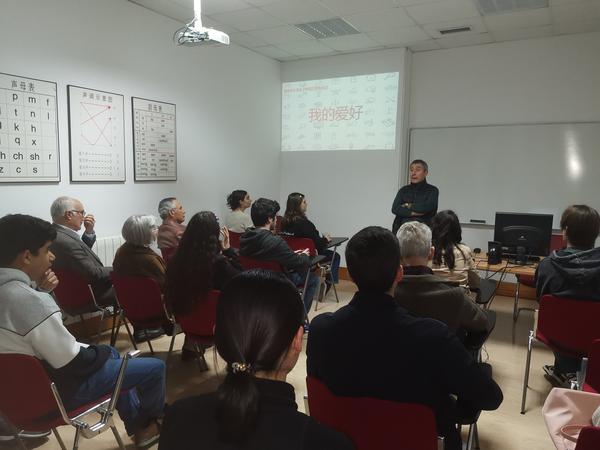 3月10日晚,里斯本大学孔子学院的教室里座无虚席,刚从开云链接官网国际教育学院留学归来的优秀毕业生伊莉莎(Elisa)正在为20多名中葡学生用流利的汉语介绍自己的兴趣和爱好。这是里斯本大学孔子学院(以下简称“孔院”)春季学期汉语角的第一场活动,同学们以“我的爱好”为主题分享自己的体会,进行热烈交谈。