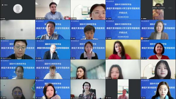 北京时间3月30日下午,国际中文教师奖学金------泰国天素谛皇家大学汉语专项提高班举行开班仪式,副校长程国毅出席开班仪式。泰国天素谛皇家大学人文与社会学院、我校国际合作与交流处、继续教育学院相关负责人、教师代表,以及泰国天素谛皇家大学的百余名学员参加了开班仪式。
