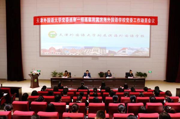 党委巡察办、巡察组全体同志,国际商学院党委、体育部直属党支部和附属滨海外国语学校党委领导班子成员、教师及学生代表参加了会议。