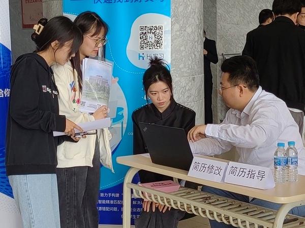 此次洽谈会现场除招聘活动外,还设置了“简历门诊”,由校外就业指导专家为同学们提供简历修改、政策咨询、职业指导等一站式贴心服务。