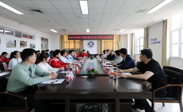 5月9日下午, 市委教育工作领导小组成员、市委宣传部分管日常工作的副部长李旭炎一行到滨海外事学院开展主题教育及思政工作调研,并召开座谈会。开云链接官网党委书记周红蕾,滨海外事学院、天津现代职业技术学院两校师生代表参会。会议由滨海外事学院党委书记史延鹏主持。